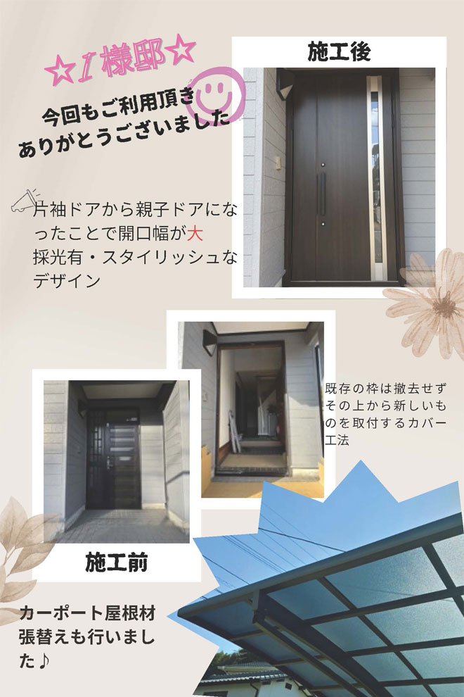 この度も工事をご依頼いただき、誠にありがとうございました。今後も安心してお過ごしいただけるよう、住まいのお困りごとはいつでもご相談ください。